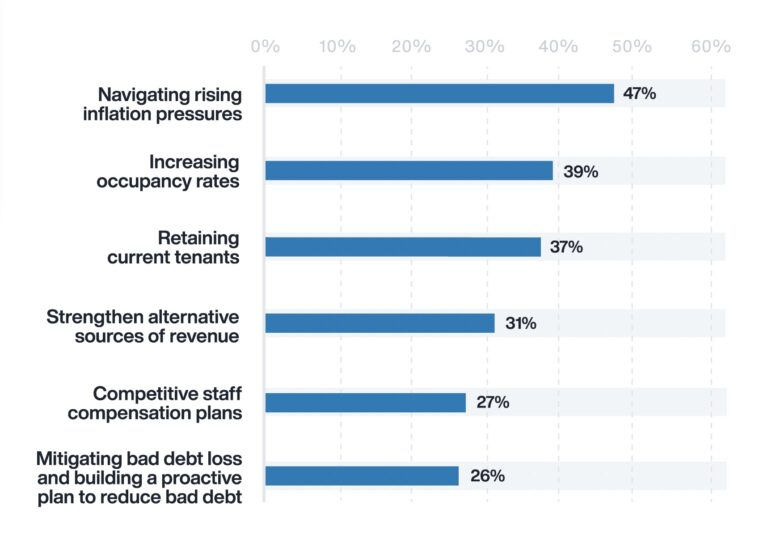 The top challenges were resident satisfaction (61%) and improving response time to residents (35%).